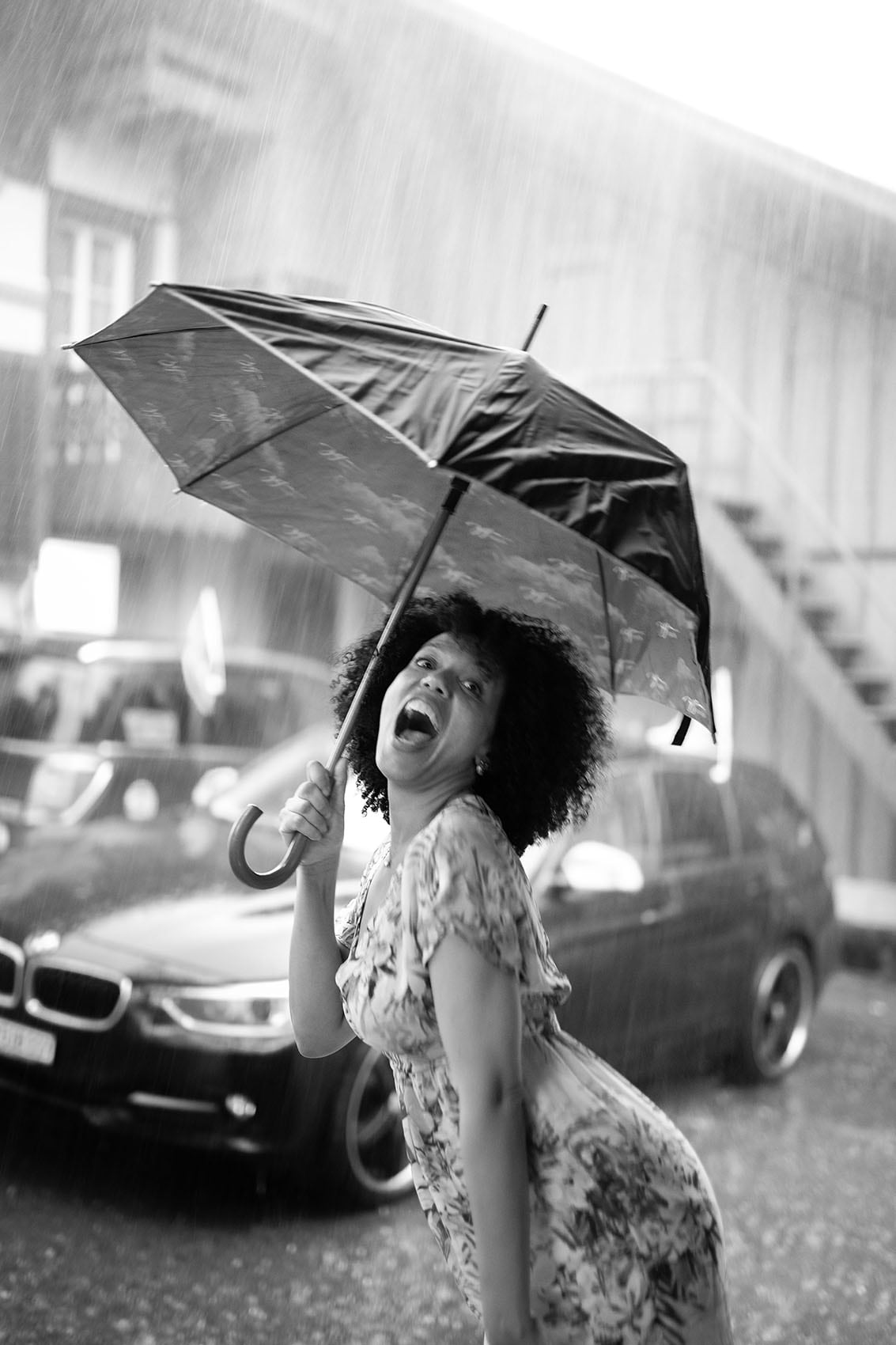 Porträt im Wald, an einem grau-nassen Novembertag. Ideale Bedingungen, um mit Schirm und entfesseltem Blitz herumzuspielen.