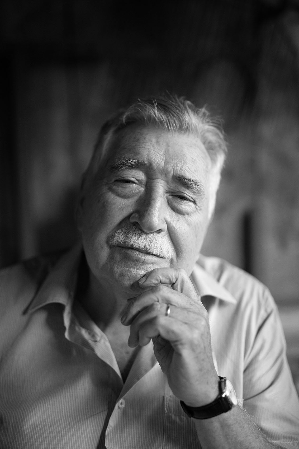Für einmal in Schwarz-Weiss, um den unruhigen Hintergrund zu dämpfen. Ohne Blitz. Das Porträt soll Natürlichkeit ausstrahlen, sowohl im Ausdruck als auch in der Ausleuchtung. Entstanden im Zuge eines Mitarbeiter-Fotoshoots für die Schweizer Berghilfe.